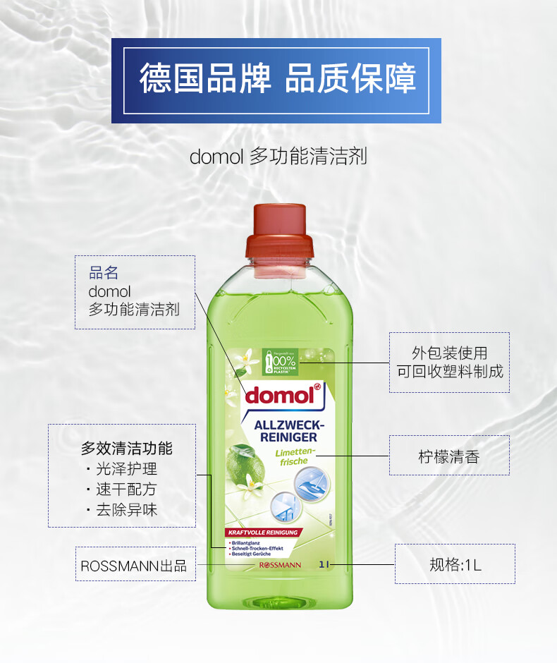 商品名称:Domol德国多功能甜柠檬味洗涤剂玻璃浴室厕所地板瓷砖清洗剂