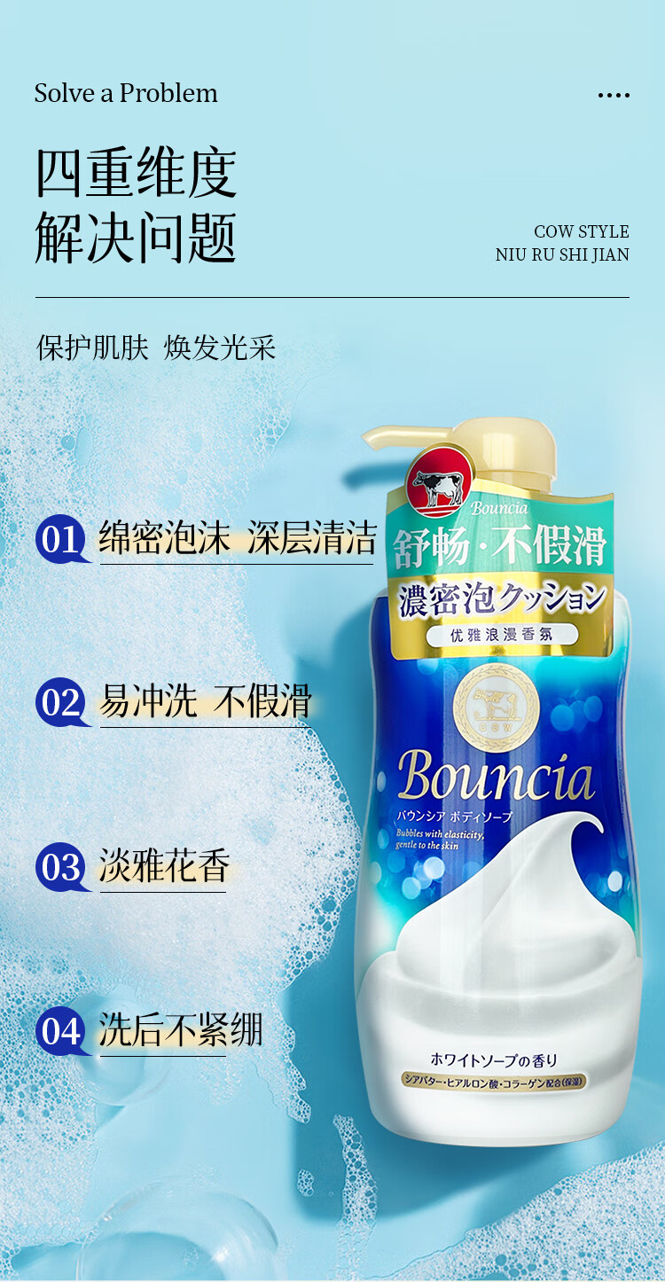 商品名称:牛乳石硷碱cow美肤沐浴乳淡雅花香480ml沐浴露泡沫丰富持久留香易冲洗
