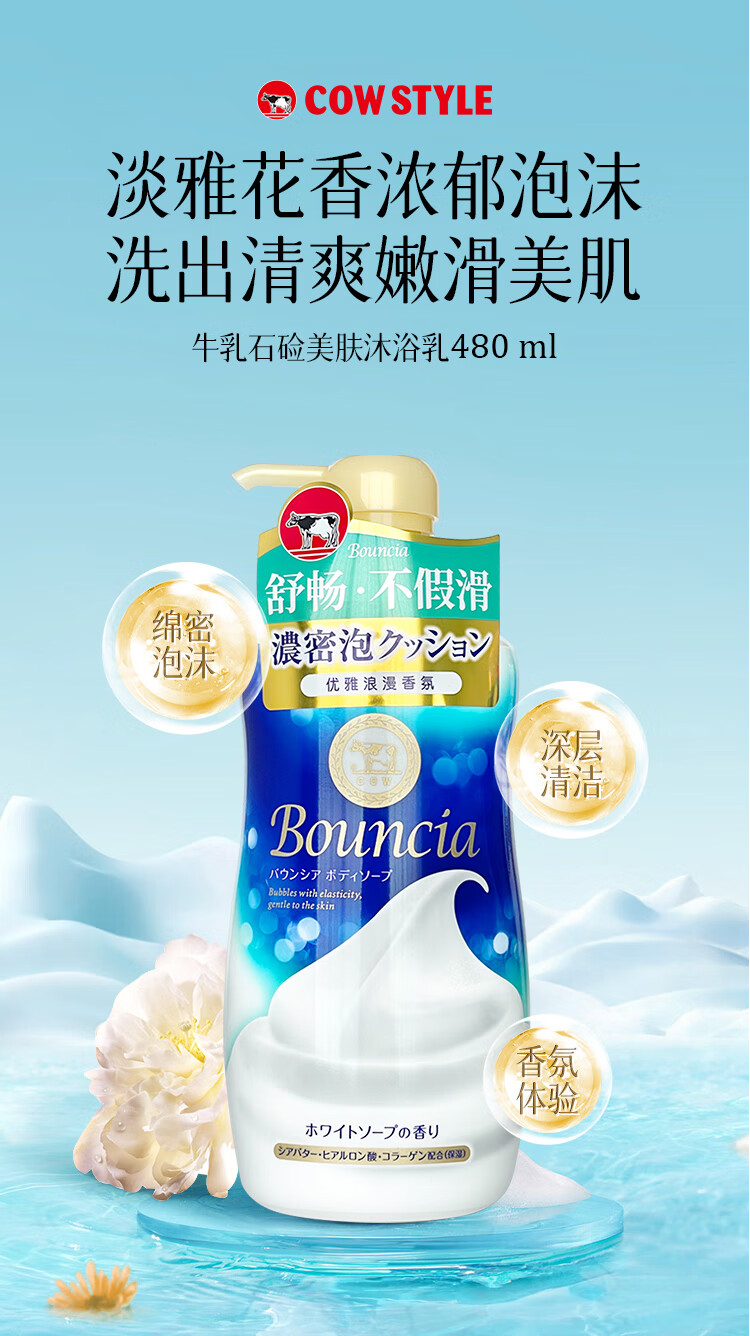 牛乳石硷碱cow美肤沐浴乳淡雅花香480ml沐浴露泡沫丰富持久留香易冲洗