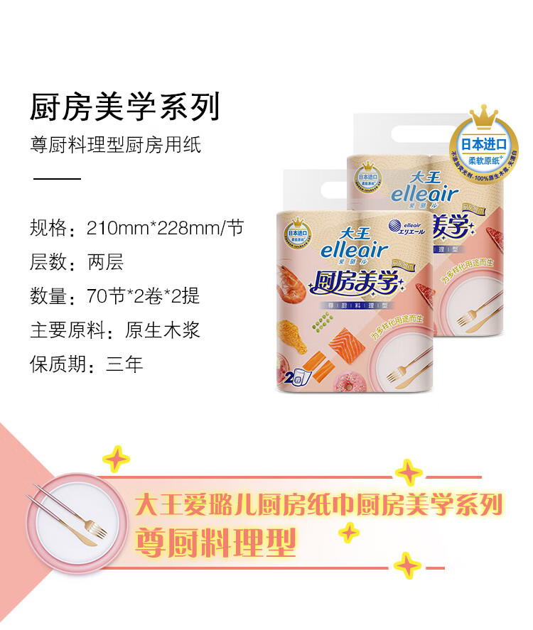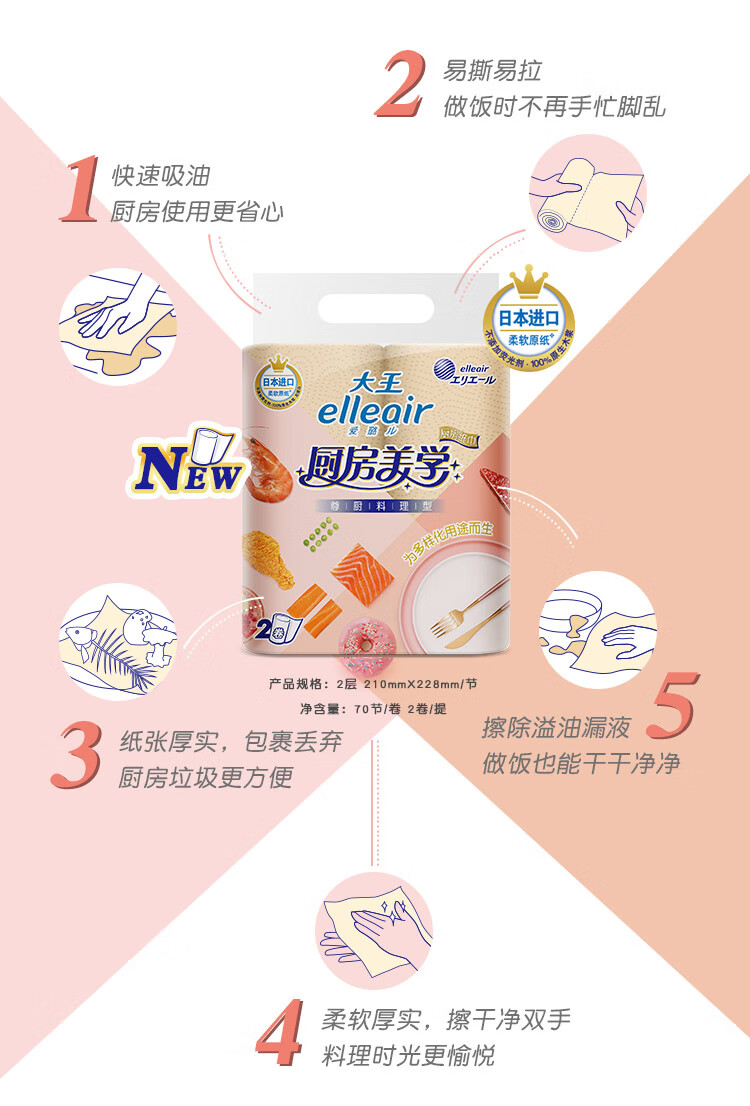 商品名称:elleair大王(GOO.N)爱璐儿 厨房美学 尊厨料理型 70节*4卷